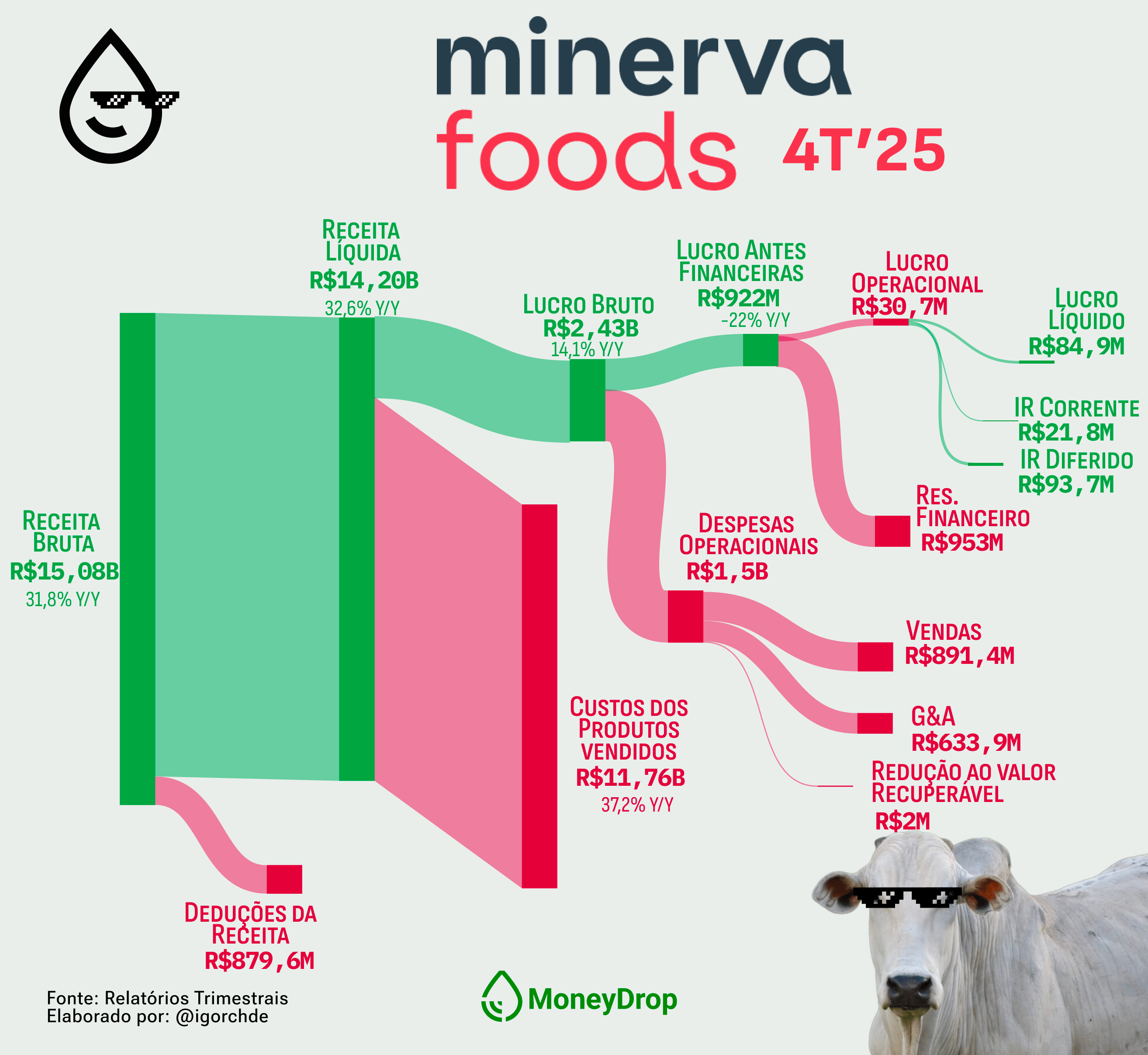 A Minerva Foods, maior exportadora de carne bovina da América do Sul, soltou ontem seus resultados e mostrou que 2025 foi um ano de recordes: receita, lucro e EBITDA. Uma bela reviravolta depois do prejuízo bilionário no ano anterior.