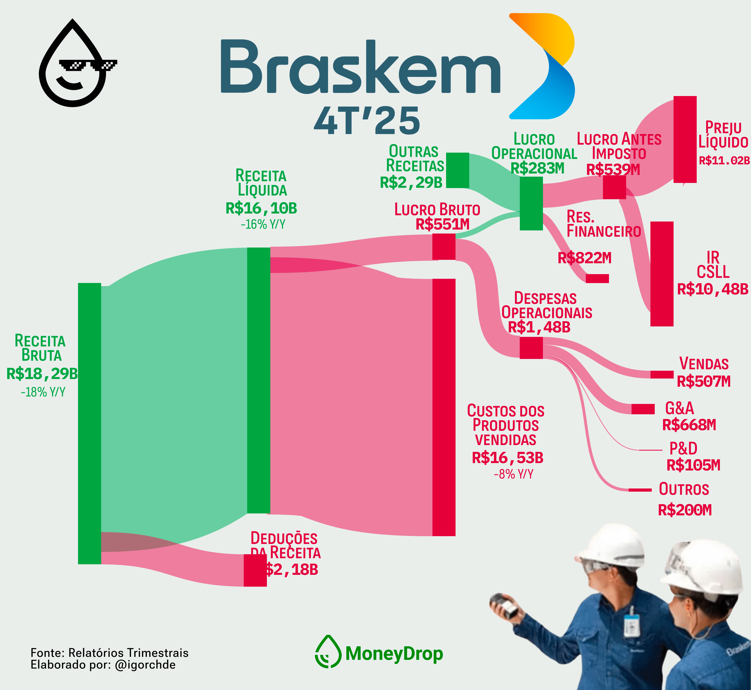 A Braskem fechou o trimestre com um “Houston, we have a problem!”. E não é um probleminha qualquer… é um daqueles que fazem a empresa questionar se deve continuar operando ou não. No 4T’25, a petroquímica entregou quase o dobro de prejuízo, batendo R$ 11 bilhões.