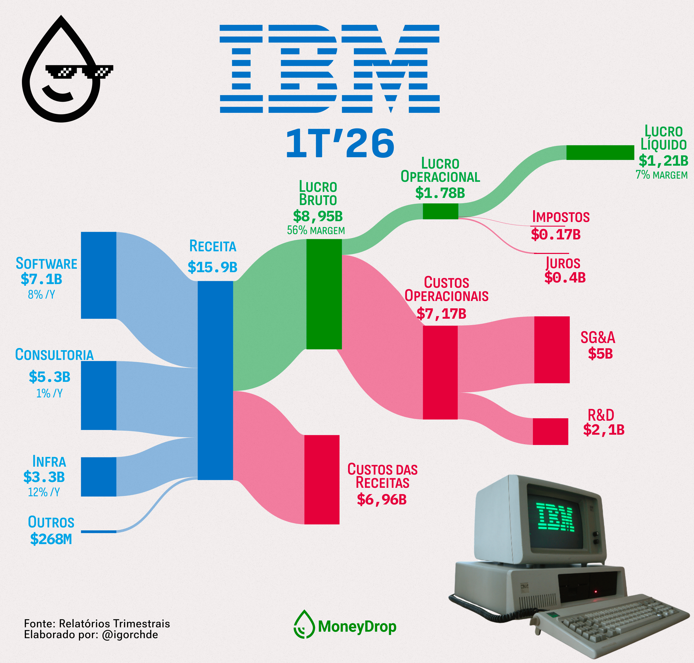 A empresa vem já de uma queda de ~15% no ano, incluindo um tombo forte depois que a Anthropic sugeriu que IA pode ajudar a modernizar sistemas antigos (bem antigos), justamente aqueles que rodam nos mainframes da IBM.