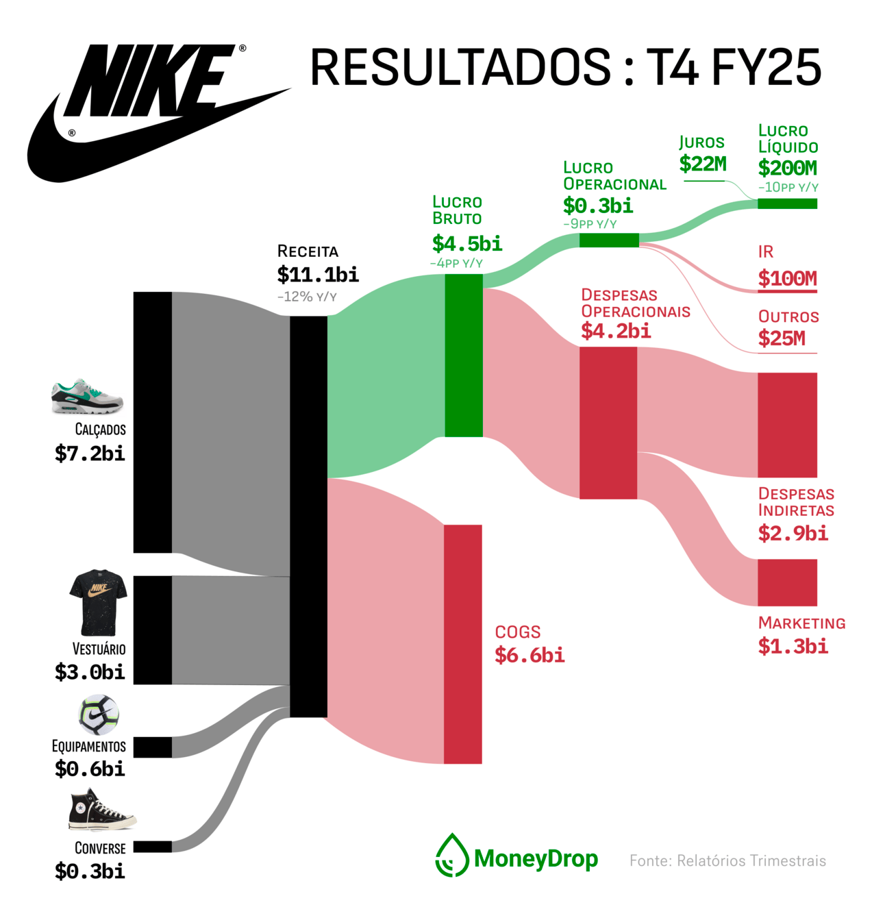O cenário ainda exige fôlego. O guidance prevê nova queda de receita no próximo trimestre e o CFO Matt Friend avisou que os novos impostos de importação vão doer no calcanhar – a Nike deve pagar cerca de US$ 1 bilhão a mais só em tarifas neste ano fiscal.