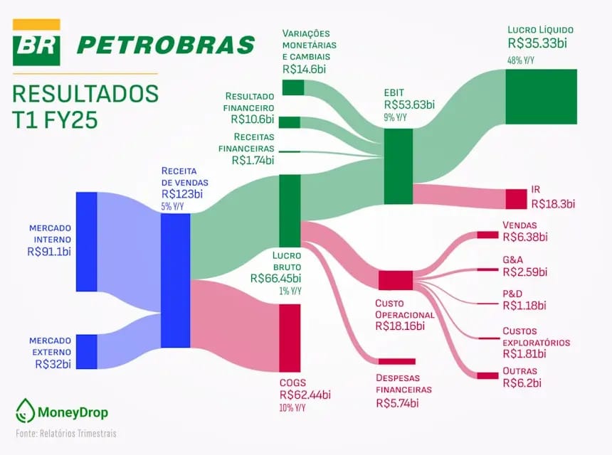 Depois de um fim de 2024 com prejuízo bilionário, a Petrobras deu a volta por cima e lucrou R$ 35,2 bilhões no 1º trimestre de 2025 — uma alta de 48,6% na comparação anual. O resultado superou as projeções do mercado e veio embalado por aumento de produção, valorização do real e vendas externas fortes.