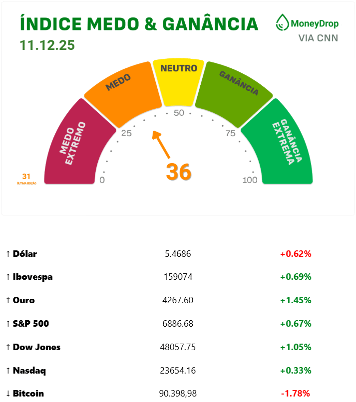 Lá fora, a aposta virou realidade: o Fed cortou juros pela 3ª vez seguida e sinalizou mais quedas no ano que vem. A taxa agora cai para 3,5%–3,75%. A decisão veio rachada: Stephen Miran, recém apontado por Trump, queria um corte maior; já Austan Goolsbee e Jeffrey Schmid defenderam deixar tudo como estava.