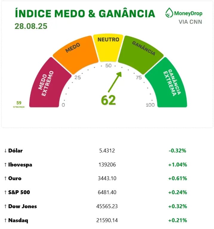 Lá fora, enquanto todos esperavam a divulgação dos resultados de Nvidia, o mercado foi subindo e o S&P500 atingiu uma nova máxima histórica. No entanto, o índice futuro virou negativo após a divulgação de resultados da fabricante de chips. As tarifas de 50% de importação da Índia para os EUA entraram em vigor ontem e hoje ainda temos balanço da Dell e da Best Buy. Amanhã também são divulgados dados importantes da inflação americana, o PCE.