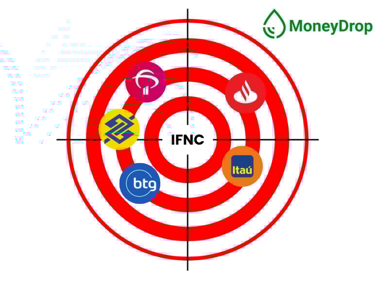 O IFNC é o índice da B3 que reúne as maiores ações do setor financeiro – bancos, seguradoras e cia. Pense nele como um grupo VIP onde só entram os gigantes do dinheiro: Itaú, Bradesco, BTG, BB, Santander… Como o setor é termômetro da economia, acompanhar o IFNC é quase como seguir o maestro de uma orquestra: ele dita o ritmo e a melodia do mercado.