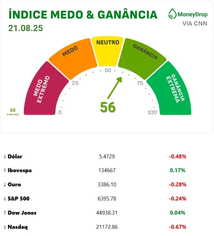 Lá fora, o movimento forte de queda do setor tech que observamos na terça se estendeu para o dia de ontem, com a Nasdaq caindo mais -0,67%. Entre os papéis mais afetados, as Mag-7 caíram -1,09% e a Intel teve queda de -6,99%. A atenção do mercado agora se volta para o Simpósio de Jackson Hole, que se inicia hoje e terá discurso de Jerome Powell na sexta-feira.